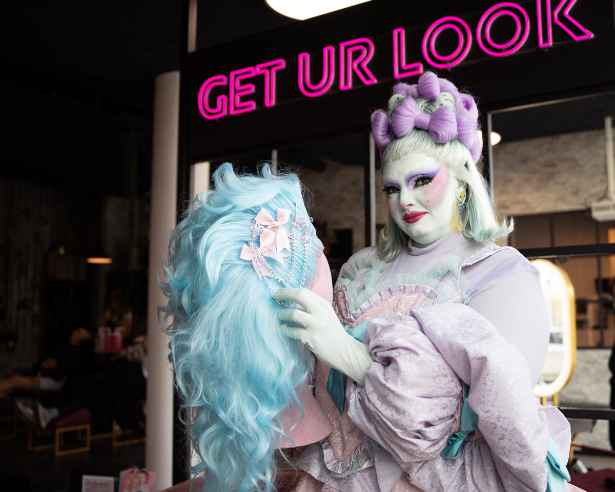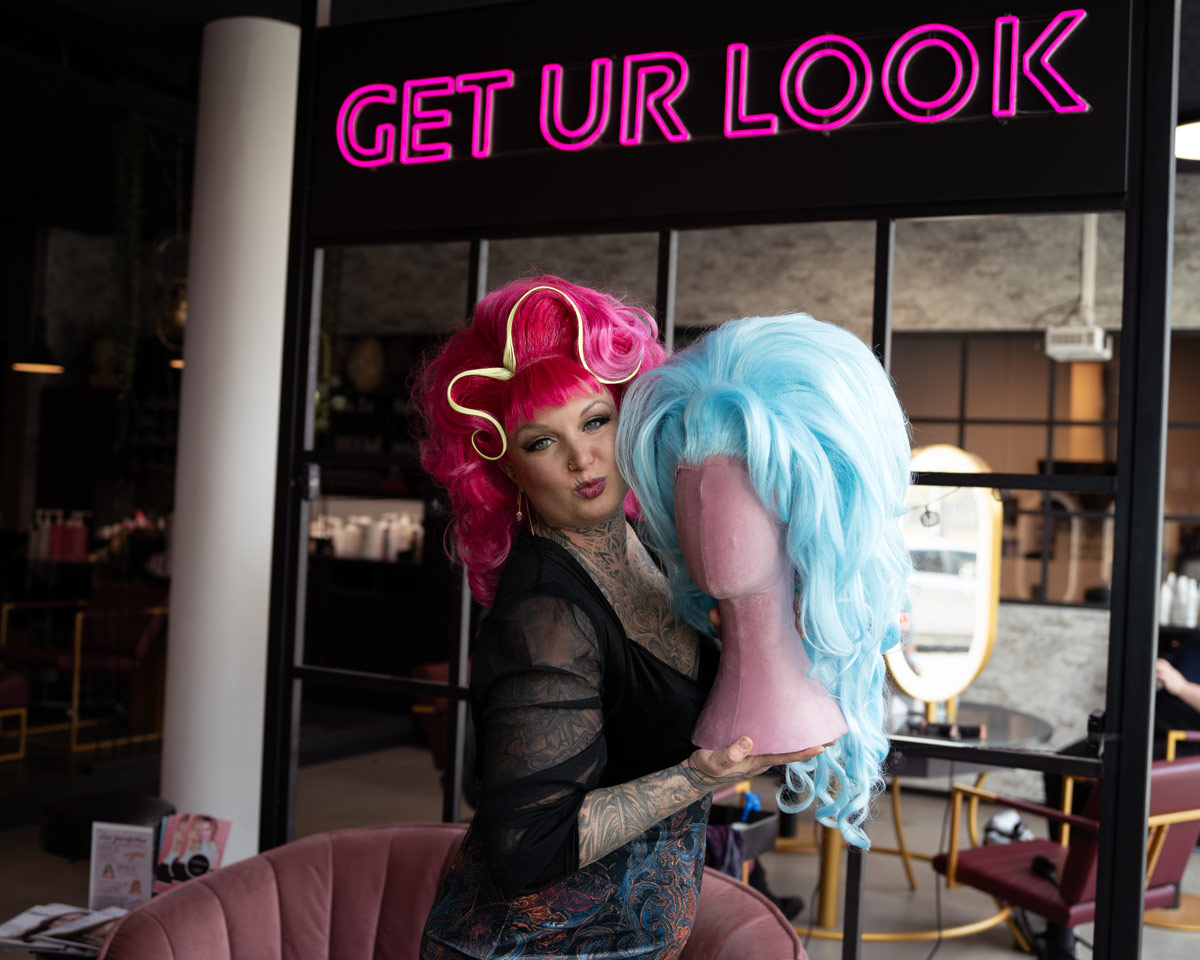 2020 entdeckte sie die Drag-Kunstform für sich, fing an, ihre eigenen Perücken zu stylen, und entwickelte daraus einen komplett eigenständigen skulpturalen Stil.